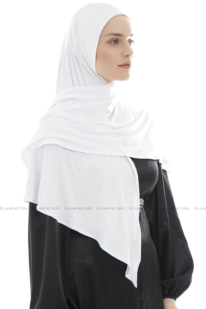Ajda - Hijab One-Piece Blanc De Ecardin.Peut être utilisé à la fois comme hijab et turban. Avec une fermeture éclair sur le devant.