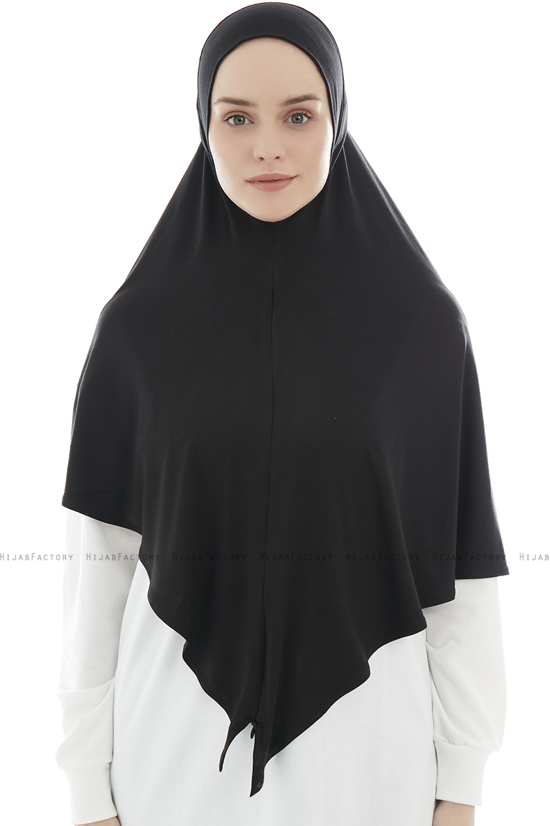 Ajda - Hijab One-Piece Noir De Ecardin.Peut être utilisé à la fois comme hijab et turban. Avec une fermeture éclair sur le devant.