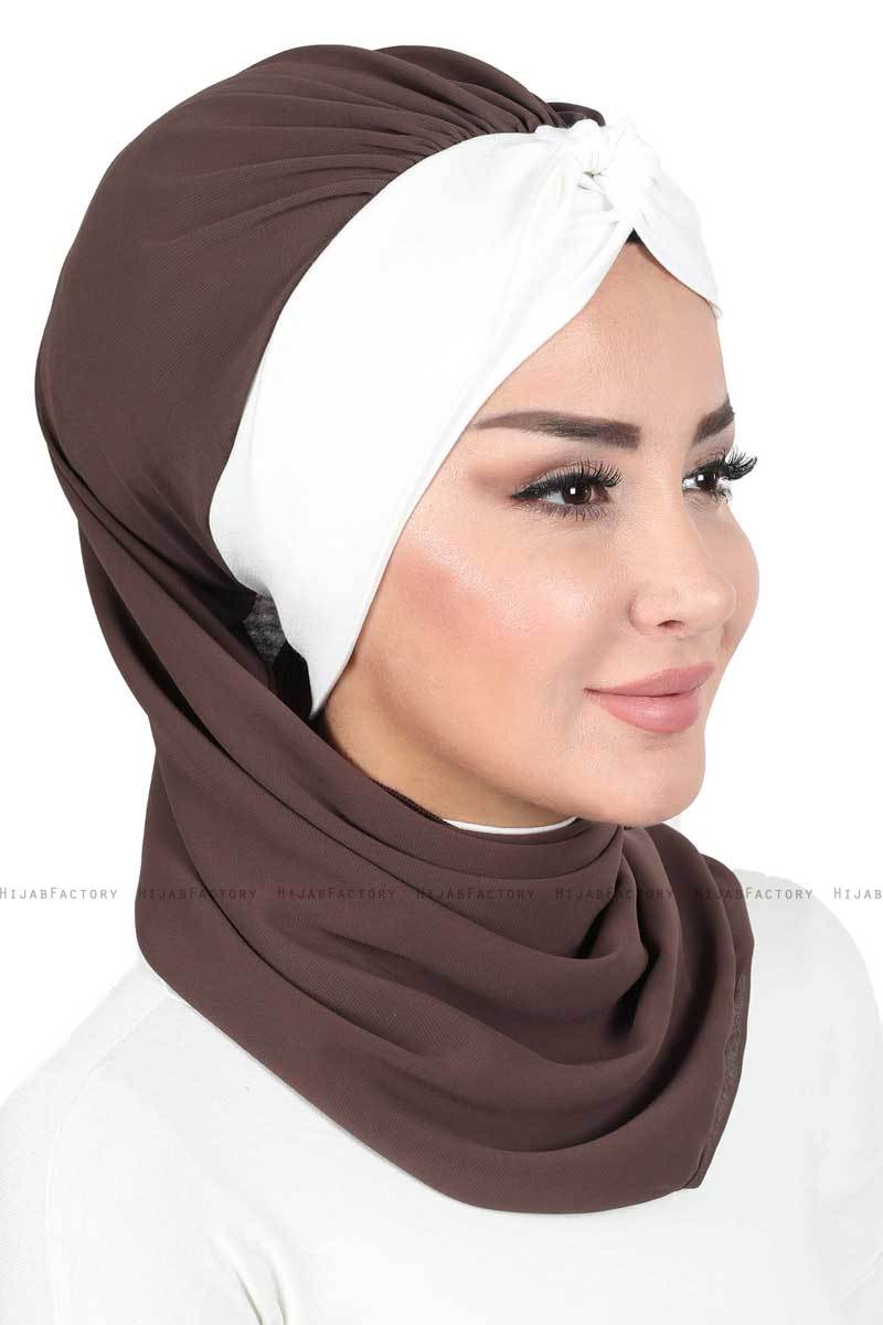 Gill - Hijab Pratique Instant One Piece Marron & Crème De Ayse Turban.