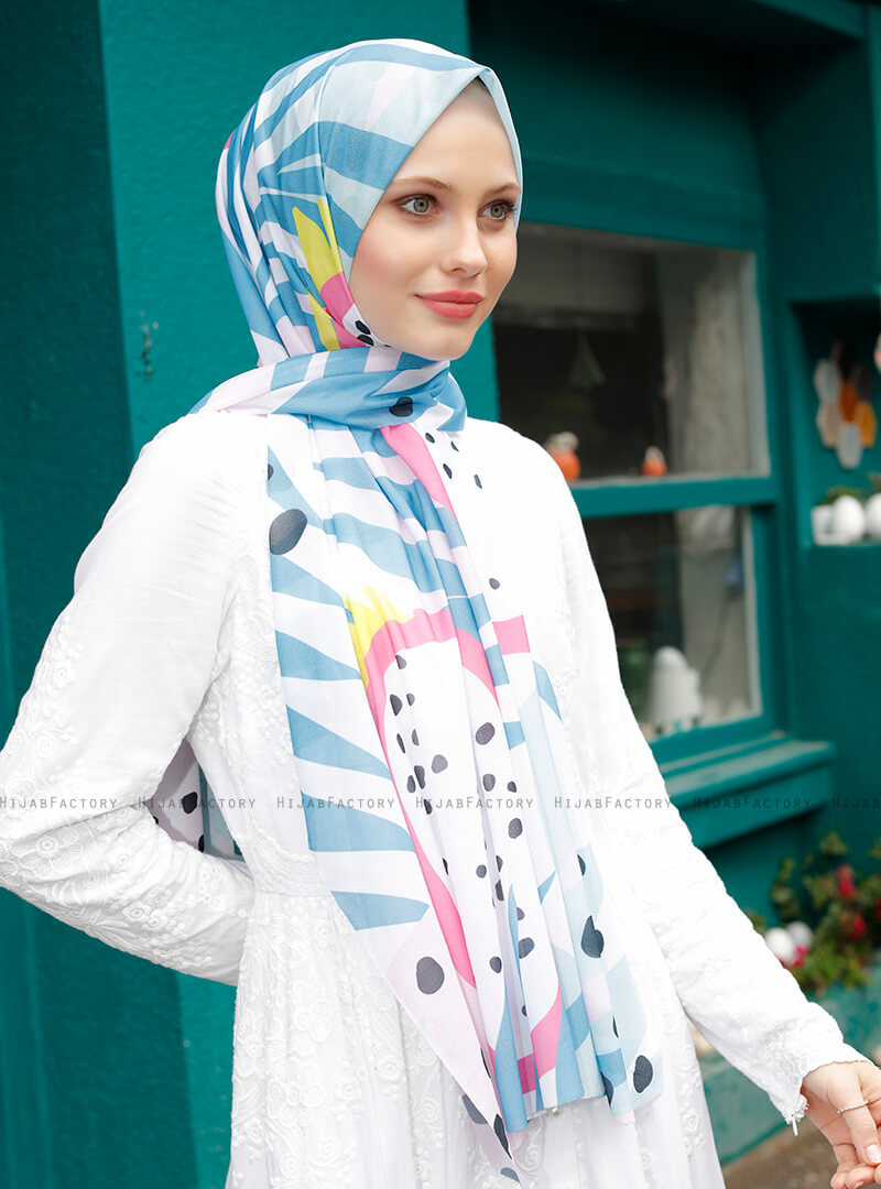 Pariza - Hijab "Jersey & Chiffon" à Motifs Turquoise De Sal Evi.