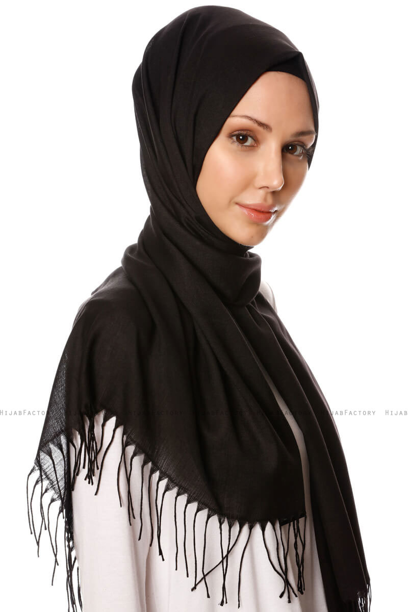 Semahat - Hijab Noir Avec Des Franges De Özsoy.
